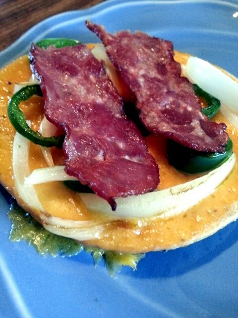 I heated a piece of turkey bacon in the microwave for 10 seconds and put that on top of the veggies.