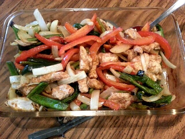 Bake in the oven at 400 for 25 minutes. And voila! Chicken fajitas ready without the preservatives and additives of a packaged fajita seasoning, and without the added work of having to saute everything!
