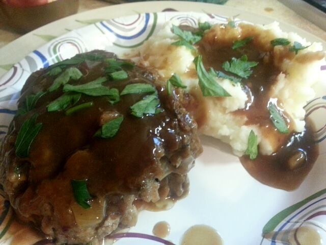- Serve patties and mashed potatoes topped with gravy and fresh parsley.
