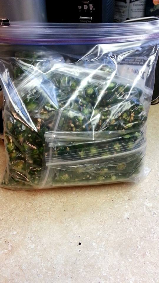 2 hours later, we had 25 bags of peppers portioned out and going into the deep freezer. Looks like we won’t have to buy any peppers all winter!