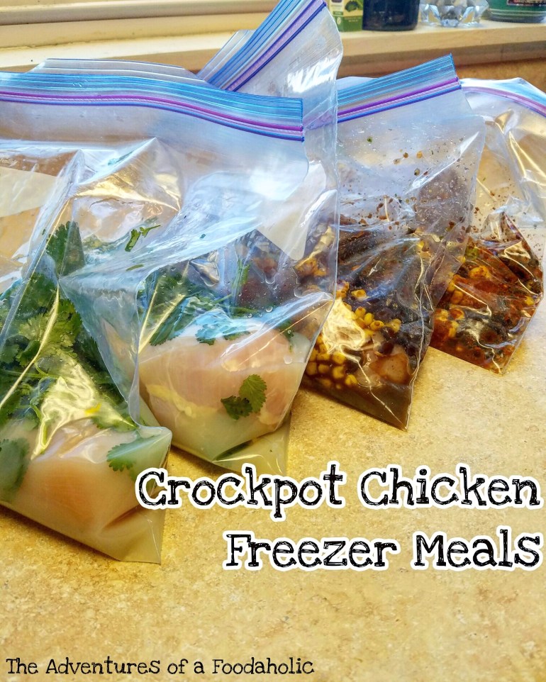 Four freezer bags, one large package of chicken, and fifteen minutes. That’s all it takes to assemble these super simple crockpot chicken meals!